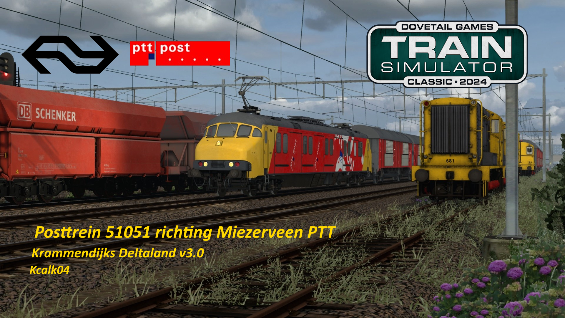 Het is 1 Juli 1989 en u staat ingepland op een Posttrein in dienst van de Posterijen. U heeft een zware trein mee met 4 beladen Hbbkkss-en onderweg van Hemdrecht PTT tot Miezerveen PTT! De trein heeft een maximale snelheid van 100km/h. Vertrek staat gepland voor 17:38, u mag vertrekken wanneer het sein veilig toont. Goede reis!