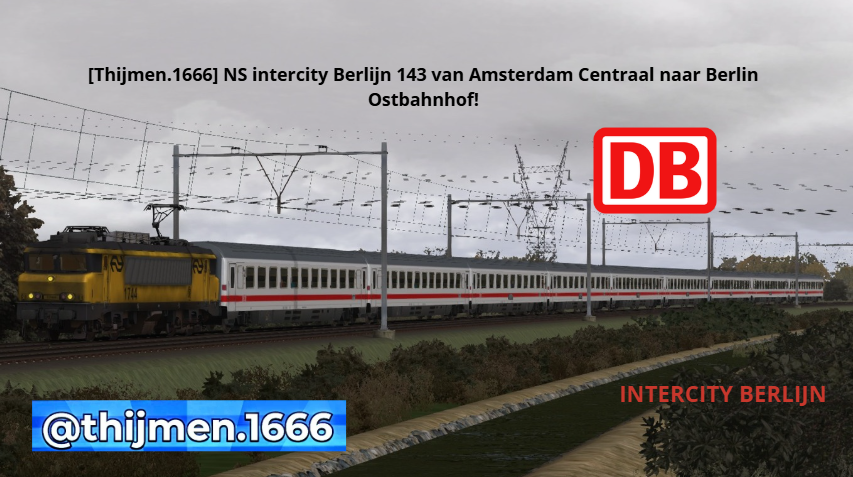 Goedemorgen machinist! U bent momenteel onderweg met intercity Berlijn 143 van Amsterdam Centraal richting Berlin Ostbahnhof u bent net station Weesp gepasseerd en u eerst stop is Hilversum. Zelf rijdt u deze trein tot Apeldoorn waar een andere machinist de trein overneemt en verder rijdt. U heeft als locomotief de 1744 bij u en de negen rijtuigen, waarvan de achterste twee eerste klas zijn. Er zijn tot nu toe nog geen bijzonderheden gemeld op het spoor. Veel succes en veel plezier!