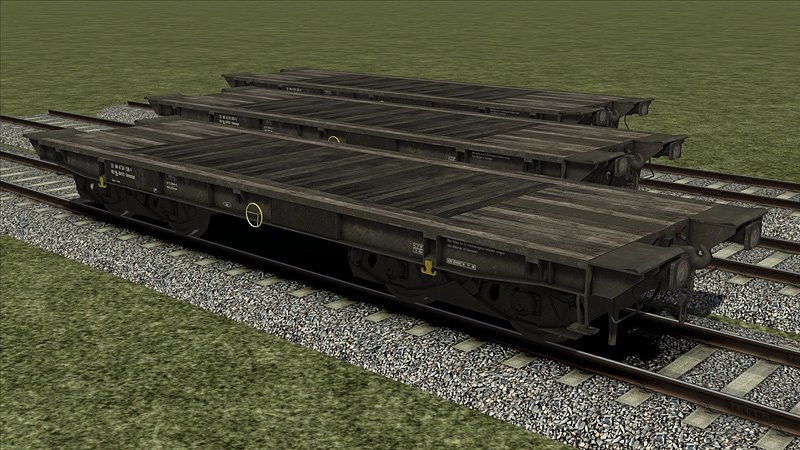 Een eenvoudige platte wagon, vaak gebruikt voor het transport van militaire voertuigen.