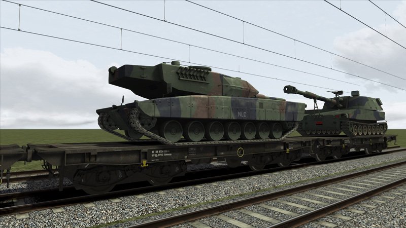 Vink het ‘cargo’ selectievakje aan onder de wagoneigenschappen tijdens het maken van een consist om de voertuigen te zien (zie Kennisbank) Houwitser- en tankmodellen zijn ook als losse objecten te gebruiken in eigen routes of scenario’s (te vinden in de lijst met ‘misc’ objecten) Voorzien van een slim script dat een rood knipperlicht op de achterste wagon van een treinsamenstelling plaatst Kan in eigen scenario’s gebruikt worden Levenslang gratis updates (lees deze info over productupdate-e-mails) Vereisten & Aanbevelingen